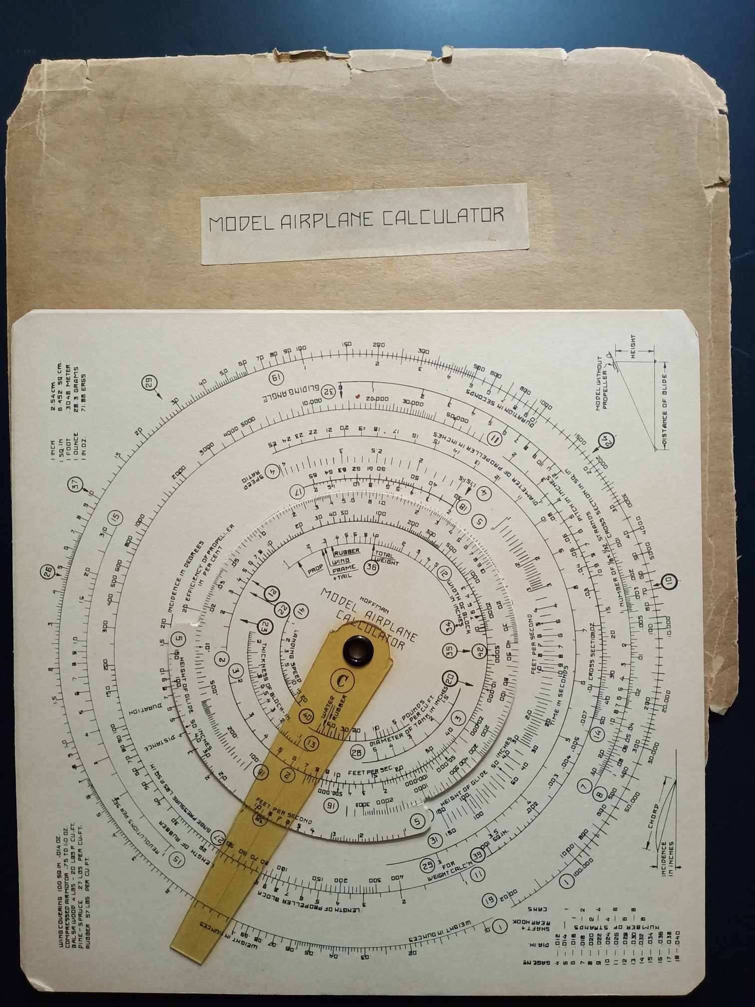 My thanks to fellow collector FanHsiu Chang for sharing a third Hoffman calculator – this one for designing model airplanes! Here is is: Front, Back.
